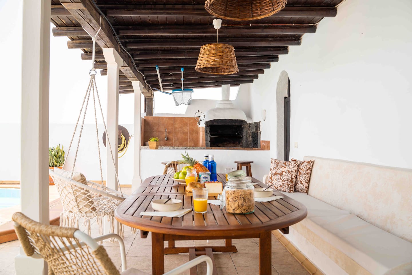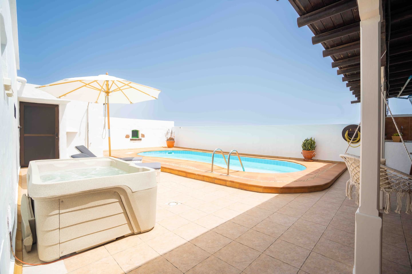 Welcome to our charming accommodation, a unique refuge that combines luxury and comfort in a spectacular setting. Our property is designed to give you an unforgettable experience, with a private pool and panoramic views that will take your breath away. The jewel in the crown is, without a doubt, our private pool, it is the perfect place to relax and enjoy the sun. The sun loungers invite you to sunbathe or dive into the crystal clear waters, while the poolside terrace is the ideal setting for special moments. The views from our property are truly impressive. From the living room windows, you will be able to admire panoramic views that stretch from the majestic mountains of Lanzarote to the horizon of the ocean. Picturesque sunrises and sunsets paint the sky, creating a magical atmosphere that complements every moment. Inside, you will find a perfect fusion between elegance and comfort. Our fully equipped kitchen gives you the ability to prepare delicious meals using fresh local ingredients. The rooms have been carefully designed to guarantee a restful sleep. Comfortable beds and high-quality linens guarantee a sound night's sleep. Every detail has been considered to offer you a relaxing and pleasant stay. Our strategic location is another highlight. With easy access to all of the island's attractions, stunning beaches, and local dining options, you'll find yourself in the center of the action while enjoying the tranquility of our haven. In short, our property offers you a unique experience with a pool and panoramic views. From relaxing by the pool to exploring the island, you'll find everything you need for an unforgettable vacation. Don't wait any longer to book your stay and live an experience that will exceed your expectations in every detail!