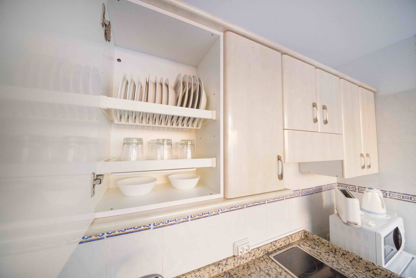 Our private apartment is located on a holiday complex with a communal pool, perfect for lounging on those lazy days! The community complex, called "La Peñita" is one of the best in the area and stands out for its tranquility and proximity to the main avenue, beach bars, restaurants and supermarkets. The apartment has a bedroom, a bathroom and a spacious living room and equipped kitchen followed by a top floor balcony. Among the services included internet, television, microwave, toaster, refrigerator, freezer, kettle, coffee machine, hair dryer, iron and ironing board amongst other things.